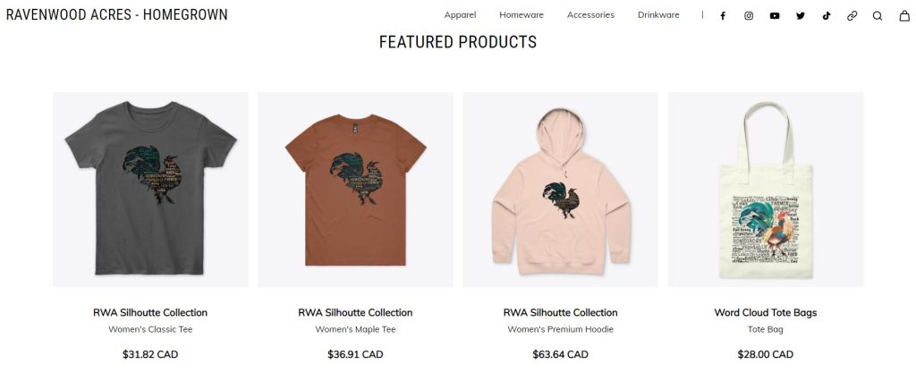 We did it! We created a merchandise account and have all sorts of neato clothing, accessories, and decor items for you … and lots more to come. We opted to use our logo for our first few designs, but we kept it generic so you can wear it without people asking you ‘is that your farm name?’ and then you have to explain that you bought it in support of this amazing little farm in the Shuswap called … hmmm, maybe we should rethink the generic idea! Anyhow … here it is! Take a look through, and feed back is welcomed. We also hope to have some art print type tees and such up soon too – just as soon as I have time to do some painting!